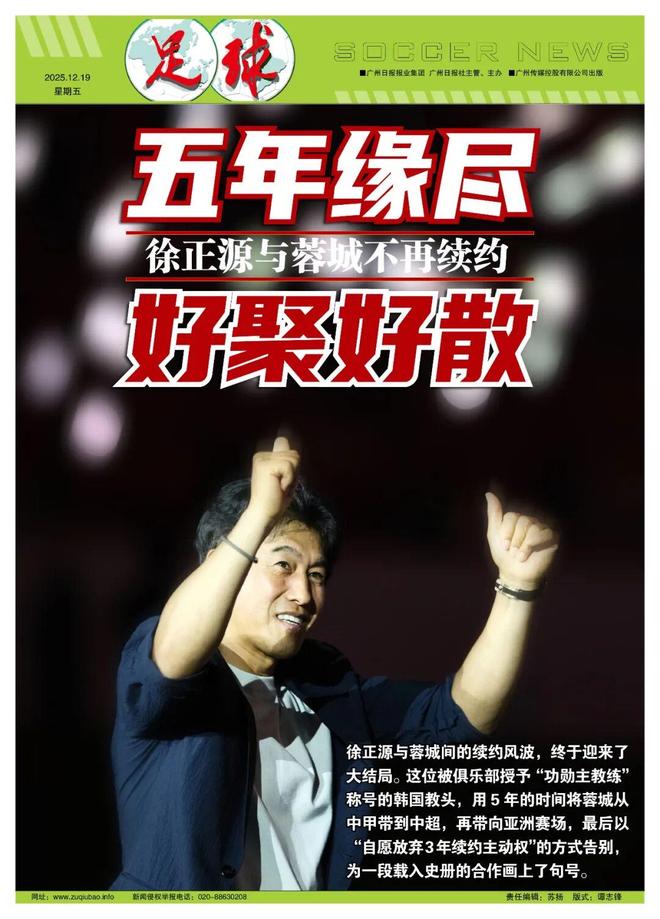 记者鲁蜜报道12月18日,徐正源55岁生日的第二天,他与蓉城间的续约风波,终于迎来了大结局。蓉城足球俱乐部正式发布公告,确认徐正源不再担任一线队主教练职务。这位被俱乐部授予“功勋主教练”称号的韩国人,用5年的时间将蓉城从中甲带到中超,再带向亚洲赛场,打出了一场场经典战役,最后以“自愿放弃3年续约主动权”的方式体面退场,为一段载入史册的合作画上了句号。